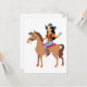 Cette conception est celle d'une cow-girl à cheval. Elle a son casquette de cowgirl sur et ses bottes de cowgirl et est assise sur le cheval tenant d'une main tout en agitant avec l'autre. Cette cow-girl à cheval design est magnifique sur ces invitations