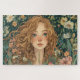 Ce joli puzzle présente une fille aux cheveux marron enchevêtrés entourée de fleurs. Il ferait un beau cadeau pour un passionné de scie qui aime les jardins.