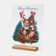 Illustration fantaisiste de Noël, Dans un monde festif où les elfes ne se contentent pas de distribuer des cadeaux, mais ont aussi le meilleur sens de la mode, vous rencontrerez notre joyeux protagoniste : un elfe barbu aux bois. Dans sa veste rouge et blanche, il ressemble au Père Noël dans un programme de remise en forme. A ses côtés, il tient un petit elfe en vêtements verts - peut-être son assistant personnel ou juste celui qui fait toujours les meilleurs biscuits. Et comme si cela ne suffisait pas, il est rejoint par un renne brun avec une couronne rouge chic autour du cou, fidèle à la devise : je suis ici pour faire la fête, pas pour travailler ! Un design mignon qui fera même sourire les plus grumpieux Grinches!