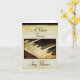 Cartes de note faites sur commande sur la feuille de papier avec "une note de" en texte élégant de manuscrit. Vous pouvez facilement changer le style de police, colorer et ajouter n'importe quel nom pour personnaliser. La conception élégante d'art de photo de ton vintage démodé de sépia d'haut étroit de clés de piano est une manière parfaite d'envoyer vos notes. Grand pour tout mélomane !
