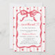 Célébrez la future maman avec une invitation de baby shower inspirée de la Saint-Valentin ! Cette invitation Little Sweetheart comprend un nœud aquarelle, des rayures roses et des cœurs rouges.