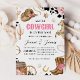 WILD WEST RODEO (GIRL) - Cet adorable South Western, Rodeo Cowprint, Cowgirl invitation fille est entièrement modifiable, peut être imprimé et envoyé par la poste ou l'évènement d'anniversaire peut être partagé par e-mail et les médias sociaux! Cette Invitation d'anniversaire Cowgirl présente une paire de Cowboy Boots & Cowboy Casquette, Lasso, Cactus, un bronco cinglant et d'autres oeuvres d'art occidentales entourées d'empreintes noires. Il est également inclus dans un cowprint backside en option. Ce Rodéo Wild West, Baby shower Invitation est sûr de compléter n'importe quel baby shower à thème occidental, révélation de genre, ou autre événement à thème cowgirl! En utilisant le logiciel Zazzle facile à utiliser (pas de téléchargement nécessaire) directement dans votre navigateur, vous achetez et personnalisez tout simplement au même endroit. C'est aussi facile que ça !