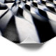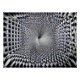 Dieses abstrakte Stück taucht den Betrachter in einen hypnotischen Tunnel aus verwobenen geometrischen Formen ein, wobei Silber- und Schwarztöne ein Gefühl endloser Tiefe und Bewegung erzeugen. Die sich wiederholenden Linien deuten auf einen unendlichen Fluss hin, fordern die Wahrnehmung heraus und laden zu einer immersiven visuellen Reise ein.