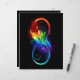 Künstlich gezeichnet Unendlichkeitssymbol mit schöner Regenbogenfeder auf weißem Hintergrund. Tattoo-Stil.