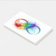 Unendliches Symbol mit Regenbogenfederhalter Post-it Klebezettel