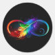 Unendliches Symbol mit Regenbogenfederhalter Runder Aufkleber
