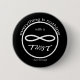 Ein grafischer Kreis und Unendlichkeitssymbol mit einem Zitat von Kurt Vonnegut "Alles ist nichts mit einer Drehung" auf einem Knopf.