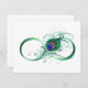 Das Symbol der Unendlichkeit mit einer hellen, grünen, künstlerischen Pfauenfeder auf weißem Hintergrund. Tattoo-Stil.