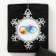 Unendlichkeitssymbol mit Regenbogen-Feder Schneeflocken Zinn-Ornament