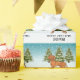 Desteis originelle Cartoon-Illustration eines niedlichen ungarischen Vizsla Rasse Hundes. Der Hund befindet sich in einer Winterlandschaft mit drei grünen Tannenbäumen. Der Hintergrund ist ein blaues bis weißes Gefälle, das das Design des kalten Wintertages verleiht. Es gibt einen personalisierbaren Textbereich, der jetzt lautet: "Frohe Weihnachten!" zusammen mit einem individuelle Name.