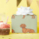 Desteis originelle Cartoon-Abbildung eines niedlichen ungarischen Vizsla / Ungarischen Pointer-Hundes als Muster auf einem grünen Hintergrund. Die Hintergrundfarbe kann auf Wunsch in jede andere Farbe geändert werden.