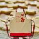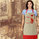 Schürze für den Gesamtdruck mit ungarischen Weihnachtsgrüßen mit roten Weihnachtsbällen. Grafisches Design in Rot und Gold von Alma Wad. "Kellemes Karacsonyi Unnepeket ." Es wird mit passenden roten Gurten geliefert. Sie können es jetzt mit einem Namen /monogram, logo etc. personalisieren.