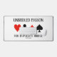 Duplikate Bridge-Spieler werden diese Schreibtischmatte mit den vier Karten-Anzügen und dem folgenden Bridge-Sprichwort genießen: "Unbridled Passion For Duplicate Bridge". Lassen Sie andere einen Doppelschlag am Bridge-Tisch mit diesem unvergesslichen Duplikat der Bridge-Schreibtischmatte machen!