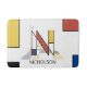 Nettes, lustiges, künstlerisches Monogramm. Hier ist der Buchstabe "N". Neoplastischer Stil, oder De Stijl, Linie und Farbe künstlerische Dekoration, der lustige Vogel sitzt auf dem Brief. Das Kunstfeld befindet sich unter dem Buchstaben. Unter dem Bild befindet sich der Vorlagenname "NICHOLSON". Eine elegante und einzigartige Badematte für Ihr Bad. Dieses Design ist vollständig anpassbar. Sie können den Vorlagennamen ändern oder löschen und das Bild ändern. Wenn Sie Schriftart, Farben, Größen oder die gesamte Komposition des Designs ändern möchten, können Sie die Schaltfläche "Design bearbeiten" bzw. "Persönlich gestalten" (je nach Fall) der blauen Farbe verwenden, um sie weiter anzupassen. Sie werden in das "Design Tool" übertragen, wo Sie Schriftart, Farben, Größen im rechten Menü finden können; Ebenen, Bilder, geometrische Elemente, Hintergründe im verlassen Menü. Einfach kreativ sein, anpassen, eins kaufen, das Party genießen und glücklich sein!