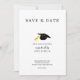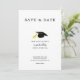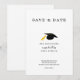 Personalisieren Sie Ihre Uni- oder High-School-Abschluss-Save the Date-Karte ganz einfach mit einer farblich passenden Graduierungskappe in dieser klassisch gestalteten Vorlage.