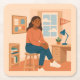In diesem Untersetzer sitzt eine Uni Studentin auf einem Stuhl in ihrem Zimmer. Das Schlafzimmer verfügt über eine Korkplatte, einen Uni-Pennant, eine Schreibtischlampe und eine weiche Pflanze. Die Gegenstände verleihen Persönlichkeit, ohne störend zu sein. Der Untersetzer ist ein Untersetzer aus viereckigem Zellstoff. Die Abmessungen sind 4" x 4". Es sind sechs Untersetzer im Untersetzer Set.