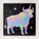 This fantasy jigsaw puzzle reimagines the classic unicorn as a gentle, dreamy cow, glowing in soft rainbow colors under a starry night sky.