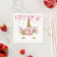Eingezackte Papierservietten mit bezauberndem Einhorngesicht, goldene Wimpern und goldenes Blumenhorn auf hübschem pastellfarbenem Punkt-Hintergrund. Sie können Text hinzufügen, um diese niedlichen Einhornservietten zu personalisieren.