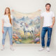 Eine Fleecedecke, die ein traumhaftes Bild eines weißen Einhorns mit einer Regenbogenmane zeigt, die in einem Feld von Blume stehend ist. Im Hintergrund sind majestätische Berge. Das perfekte Geschenk für diejenigen, die Liebe magische und mystische Einhörner. Enthält generativen Inhalt.