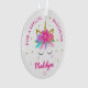 Ce ornement personnalisé de licorne fille présente un joli visage de licorne avec des fleurs et des étoiles de parties scintillant en faux or. Personnalisez le texte à l'avant et à l'arrière.