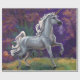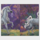 Unicorn Glade I Glauve Art von Traci Van Wagoner Druck, Plakate, Accessoires, und Geschenke zeigen unser Original-Gemälde eines Einhorns, stehend in einer magischen sonnigen Glade mit den Worten am unteren Ende, Unicorn Glade, in einem schönen gradatierten lila Drehbuch. Unsere hübsche Fantasiekunst macht Geschenke für alle, die Einhörner, Pferde und alles Zauberhafte Lieben.