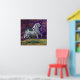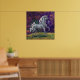 Unicorn Glade I Glauve Art von Traci Van Wagoner Druck, Plakate, Accessoires, und Geschenke zeigen unser Original-Gemälde eines Einhorns, stehend in einer magischen sonnigen Glade mit den Worten am unteren Ende, Unicorn Glade, in einem schönen gradatierten lila Drehbuch. Unsere hübsche Fantasiekunst macht Geschenke für alle, die Einhörner, Pferde und alles Zauberhafte Lieben.