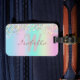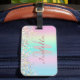 Unicorn Holographic Glitzer Luggage Tag - Ein trendiger, funkelnder Gepäckanhänger mit türkisfarbenem, rosa, violett und hellgelbem Glitzer. Sie können diesen Gepäckanhänger personalisieren, indem Sie Ihren Namen und Ihre Initialen hinzufügen.