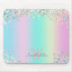 Unicorn Holographic Glitzer Mauspad - Ein trendig glitzerndes, farbiges Mauspad mit türkisfarbenem, rosa, violett und hellgelben Glitzer. Sie können dieses Mauspad personalisieren, indem Sie Ihren Namen und Ihre Initialen hinzufügen.