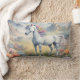 Un coussin à lombaire montrant une image rêveuse d'une licorne blanche avec une crinière arc-en-ciel debout dans un champ de fleurs. Dans l'arrière - plan se trouvent des montagnes majestueuses. Le cadeau parfait pour donner à ceux qui aiment les licornes magiques et mystiques. Contient du contenu génératif.