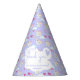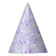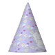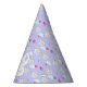 Das Design ist mit einem Lavendelhintergrund mit weißen Einhornköpfen in Pastellrosa, Blau und Gelb. Überall gibt es flauschige blau umrissene Wolken, rosa Herzen und gelbe Sterne. Die Elemente sind in einem nahtlosen, skurrilen Muster angeordnet. Der Gesamtstil ist verträumt und fantasievoll inspiriert.