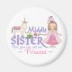 Hübsche Prinzessin in Rosa mit Einhorn und gekrönter Frosch mit Text, der 'Middle Sister' heißt. Hat die passende große Schwester und kleine Schwester Designs.