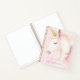 Ein mädchenhaftes Notizbuch für Schule, Journalismus oder Tagebuch. Ein weicher, rosafarbener Hintergrund, mit einem niedlich rosa, wasserfarbenen Einhorn dekoriert. Personalisieren und einen Namen hinzufügen.