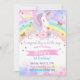 Invitation d'anniversaire de fille, licorne, arc-en-ciel, étoiles, parties scintillant d'or.