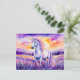 Unicorn unter Vibrant Sunset Rainbow Sky Postkarte