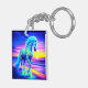 Ce porte - clé a une licorne photographiée dessus.