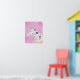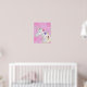 Jolie licorne blanche avec des fleurs dans sa crinière sur un arrière - plan rose, sur cette affiche d'art.