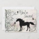 Unicorne silhouette personnalisée et fées dans une magique, forêt imaginaire invitation fête d'anniversaire.