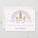 Ce design adorable présente un visage de licorne avec un arc-en-ciel aux couleurs pastel et des ornements de parties scintillant en faux or.
