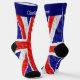 This pair of union jack flag design socks are a soft fabric covering for the feet, typically worn inside shoes to provide comfort, warmth, and absorbency. You can customise this pair of socks with any text of your choice. Should you require any help with customising then contact us through the message link on this page. Flag of Great Britain design pair of socks.