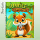 Personalize the back cover of this adorable "Jungle Welcome" notebook! Featuring a unique whimsical wild baby Squirrel cartoon graphic tropical animal character in a lush forest scene, inviting you into a world of imagination and creativity. This design is perfect for woodland safari lovers, nature wildlife fans, and anyone who enjoys cute, cozy zoo vibes.