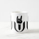 Eine weiße Tasse mit dem Logo für Chalice Cooper: Die universelle Universalist Rock Music Society darauf, in Schwarz.