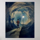 Der Universelle Reisende beherbergt einen Menschen auf einem Laufsteg wie eine Holzbrücke, der ein Wurmloch-Portal im Weltraum sieht. Dieses Design ist ein Kunstwerk und würde sich hervorragend für junge Astronauten oder Raumfahrtsammler eignen. #space #travel #artistic #style #trendy