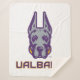 Das Maskottlogo der Universität Albany Great Dane zeigt eine stilisierte Darstellung des Kopfes eines großen Dänen. Der Hund ist illustriert mit scharfen, kühnen Linien in lila und grau, was ihm einen erbitterten, selbstbewussten Ausdruck verleiht. Die Ohren stehen hoch und symbolisieren Aufmerksamkeit und Stärke. Unter dem Kopf der Großen Däne steht das Wort "UBAlbany", geschrieben in fett gedruckten, blockigen goldenen Briefen, die lila umrissen wurden, was das Markenzeichen der Universität verstärkt. Dieses Design repräsentiert die Sportteams von UAlbany und unterstreicht Power, Loyalität und Entschlossenheit.