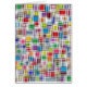 Abstrakte Kunst der Quadrate der verschiedenen Farben umrissen im Schwarzen gegen einen weißen Hintergrund, der verwischt worden ist.