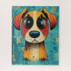 Dieses Design zeichnet sich durch eine farbenfrohe Hundeillustrierung mit großen und unschuldigen Augen aus. Dieses Design besteht aus einem blauen Hintergrund, und es ist eine großartige Wahl für Hundefreunde.