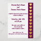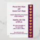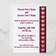 Mit dieser Hochzeitseinladung mit einer reichen Weinrandung auf der rechten Seite, die mit einem in echter Folie bedruckten Muster verpixelter Herzen geschmückt ist, verleihen Sie Ihrem Anlass Touch und Spaß. Die links Kartenseite bietet viel Platz für alle Details Ihres Videospielereignisses mit Beispieltexten, die an Ihre Bedürfnisse angepasst werden können. Ein großes 8-Bit-Weinherz rundet die Sache auf der Rückseite ab, um eine niedliche Note zu schaffen. Diese Einladung wird mit jedem anderen 8-Bit-Herz-in-Wein-Produkt übereinstimmen, damit Sie Ihre Veranstaltung so koordiniert gestalten können, wie Sie es wünschen.