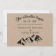 Schönes Kraftpapier für dieses natürliche Aussehen gepaart mit dekorativem Schriftart und Illustrationen der Berge und benutzerdefinierte Drehbuch "Das Abenteuer beginnt". Benutzerdefiniertes Monogramm und das Datum mit dem Foto auf der Rückseite für die einzigartige Save the Date Karte
