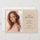 Die schöne Ankündigung des Abschluss-Fotos verfügt über ein vertikal oder portrait orientiertes Foto an den links ausgerichtet, mit "unserem Absolvent" und dem Namen, Schule und Abschluss Ihres Absolventen Jahr auf der rechten Seite. Die zarte geometrische Detaillierung vervollständigt den Look. Fügen Sie der Rückseite eine persönliche Nachricht und ein zusätzliches Foto hinzu.