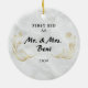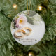 Feiern Sie einen besonderen Meilenstein mit diesem eleganten Ornament mit Hochzeitsringen und Blumendetails. Ein perfekter Sake für Paare, die ihr erstes Kind zusammen markieren. Ein gedankenvolles Geschenk und eine schöne Ergänzung zum Urlaubsstil.