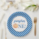 Unser kleiner Kürbisblau karierter erster Geburtst Pappteller